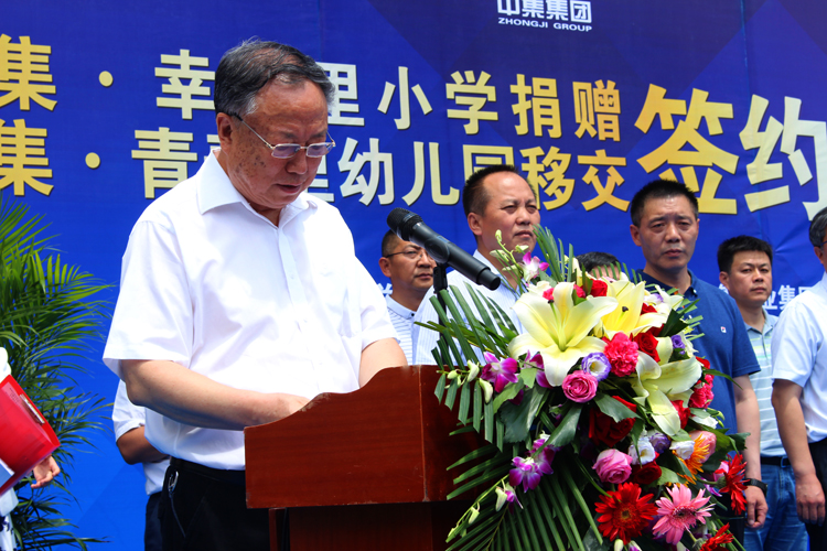2017年6月22日下午14時,甘肅中集實業(yè)集團有限公司通過甘肅省慈善總會,向蘭州市安寧區(qū)人民政府捐贈價值1.02億元中集•幸福里小學(xué)暨中集•青春里配建幼兒園移交儀式在中集•幸福里小學(xué)操場隆重舉行。甘肅省原人大常委會副主任、甘肅省慈善總會會長朱志良,甘肅省原民政廳黨組書記、廳長、甘肅省慈善總會常務(wù)副會長梁國安,甘肅省教育廳副廳長趙 凱,蘭州市人大常委會副主任孫曉鋼,蘭州市人民政府副秘書長淡漢榮,安寧區(qū)區(qū)委書記王 方及安寧區(qū)區(qū)委副書記、區(qū)長雒澤民攜安寧區(qū)委、區(qū)人大、區(qū)政府、區(qū)政協(xié)四大班子領(lǐng)導(dǎo),蘭州市教育局、蘭州市國土局、蘭州市規(guī)劃局、蘭州市房產(chǎn)局相關(guān)領(lǐng)導(dǎo)出席捐贈儀式,甘肅中集實業(yè)集團有限公司黨委書記、董事長周啟濤代表公司完成與安寧區(qū)人民政府捐贈及移交簽約。